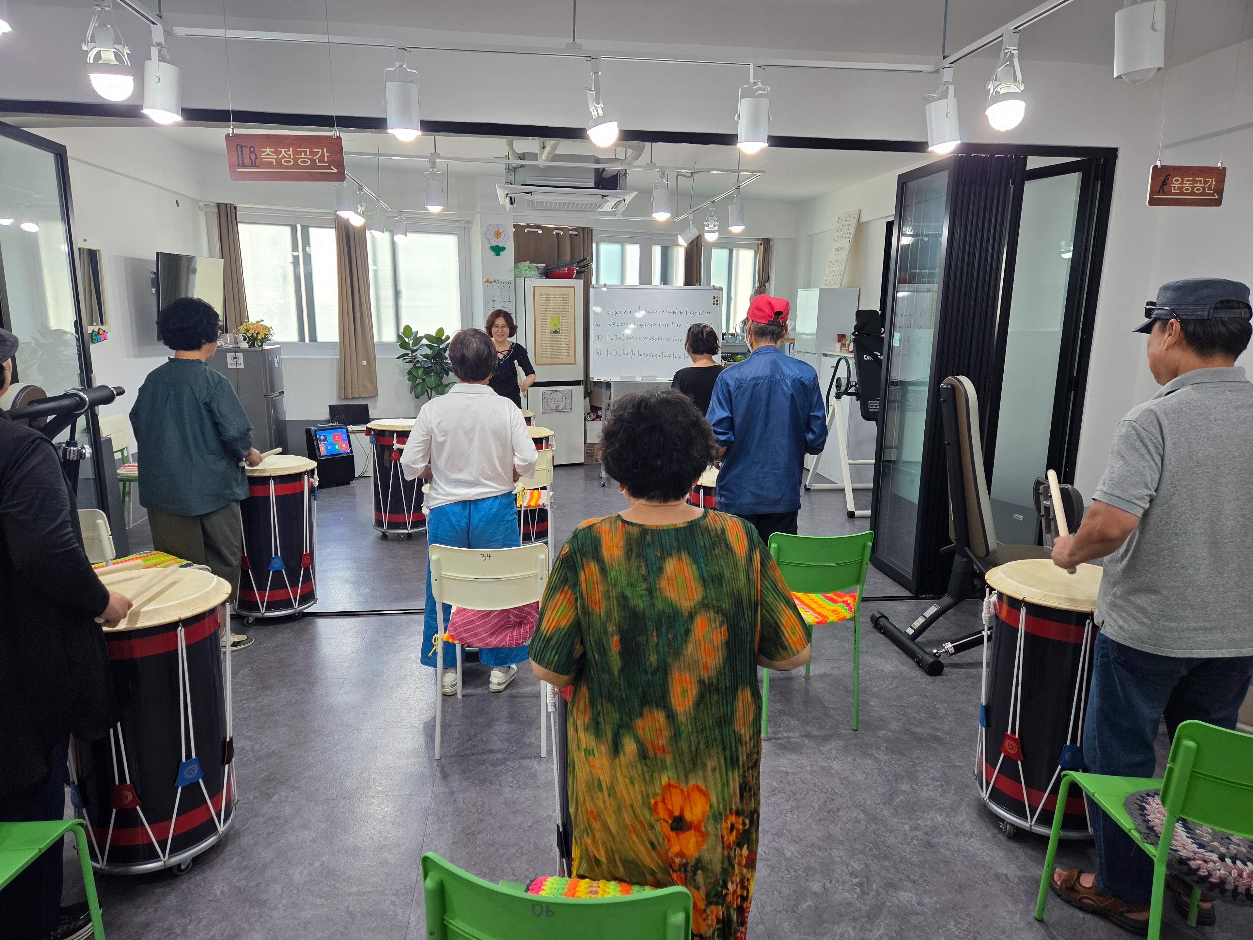 난타 활동 시간에는 북 소리에 참여 회원의 흥이 절로 나오게 됩니다.