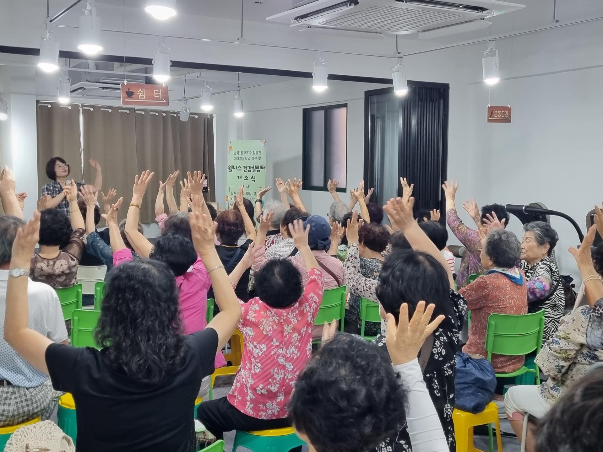 금요일이라 웰니스 체조모임이 있는 날이었는데 겸사겸사 개소식 참여한 분들과 다같이 진행하는 더 즐거운 시간이었습니다.